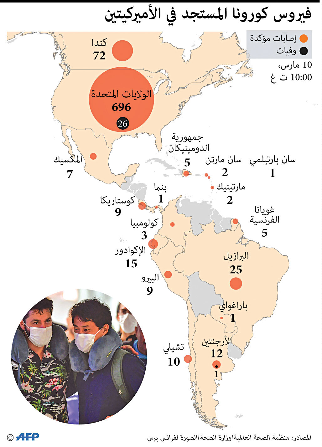 واصل فيروس كورونا المستجد "كوفيد- 19"، أمس، انتشاره عابراً الحدود الدولية "بلا تأشيرة"، دون أن تتمكن الإجراءات المتبعة حتى الآن من السيطرة عليه أو الحد من تفشيه.وبعدما بقيت بمنأى عن الأزمة لأسابيع، وجدت الولايات المتحدة نفسها في قلب "التمدد الكوروني"، بعدما تخطت الإصابات فيها عتبة الألف إصابة.وفي أوروبا، التي تشهد تفشيا واسعاً في إيطاليا ويواصل عدّاد كورونا حصد الاصابات خصوصاً في فرنسا وألمانيا، برزت أمس تصريحات لافتة للمستشارة الألمانية انجيلا ميركل، حذرت فيها من اصابة 70 في المئة من الألمان، وقد جاءت بعد أن تجنبت المستشارة الخوض في هذه الأزمة الصحية العالمية المستجدة، الأمر الذي تسبب لها بانتقادات.
