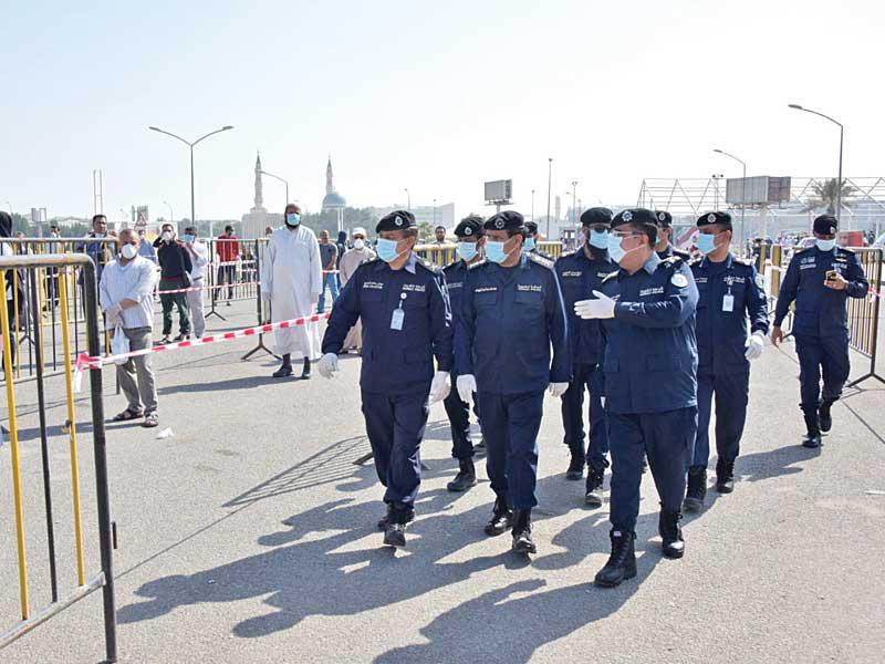 أكد وكيل وزارة الداخلية الفريق عصام النهام أن المؤسسة الأمنية لا تدخر جهداً في مواجهة جميع الأزمات، وأن رجالها دائماً وأبداً على أهبة الاستعداد لتنفيذ المهام الوطنية المنوطة بهم، موجها الشكر والتقدير إلى رجال الأمن والدفاع المدني ووزارة الصحة وجميع جهات الدولة المشاركة، الذين يقومون بعمل إنساني ويبذلون الغالي والنفيس لتحقيق الأمن والأمان للوطن والمواطنين والمقيمين.جاء ذلك خلال جولة تفقدية للواء النهام يرافقه وكيل وزارة الداخلية المساعد لشؤون المرور والعمليات اللواء جمال الصايغ صباح أمس بمركز الفحص الجديد بأرض المعارض في مشرف.
