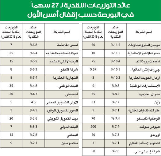 27 سهماً عوائدها النقدية توازي 7 أضعاف الفائدة الجديدة