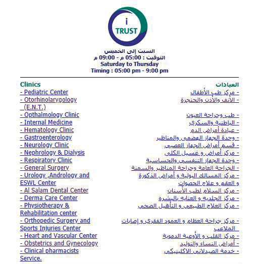 واعتبر المطوع أن هذه الخدمة، التي يبادر «السلام الدولي» بتقديمها، واجب مستحق عليها، في ظل الظروف الصحية التي تتطلب تضافر الجهود، ولاسيما الصحية منها، لعبورها بأمان. وأضاف أن «أهل الكويت هم أهلنا، ومستشفى السلام الدولي حريص كل الحرص على مصلحتهم، ونحن مطالبون بتشجيعهم على البقاء بالمنزل من أجل سلامتهم، والذي يعتبر عاملا رئيسيا لهزم هذا الوباء»، مضيفا ان «تلبية حاجات أهل الكويت واجب وطني». وأكد أن إطلاق المنصة جاء مواكبة من المستشفى لحاجة البعض إلى الحصول على المعلومات الطبية خلال فترة الحظر، والتزاما بمسؤوليتنا الوطنية، مجددا التأكيد على جاهزية نخبة من أبزر أطباء المستشفى الذين يثق فيهم الجمهور لتقديم الاستشارات الطبية، وتقديم النصح والمشورة.