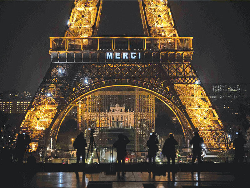 أضيء برج «إيفل» في باريس، بكلمة «شكراً» تحية للأطقم الطبية والعاملين في قطاع الخدمات الأساسية الذين يواجهون فيروس «كورونا».وقالت عمدة باريس، آن هيدالغو: «شكرا للعاملين في مجال الصحة، والشرطة، والدرك، ومسؤولي مدينة باريس، وموظفي الدفاع المدني، وطاقم سيارات الإسعاف، والجنود والصرافين، وجامعي التذاكر، وأصحاب المتاجر، وعمال التوصيل، والمتطوعين والمساعدين، والمجموعات التطوعية، وجميع أهالي باريس». واوضحت، أن البرج سيضاء مساء كل يوم.