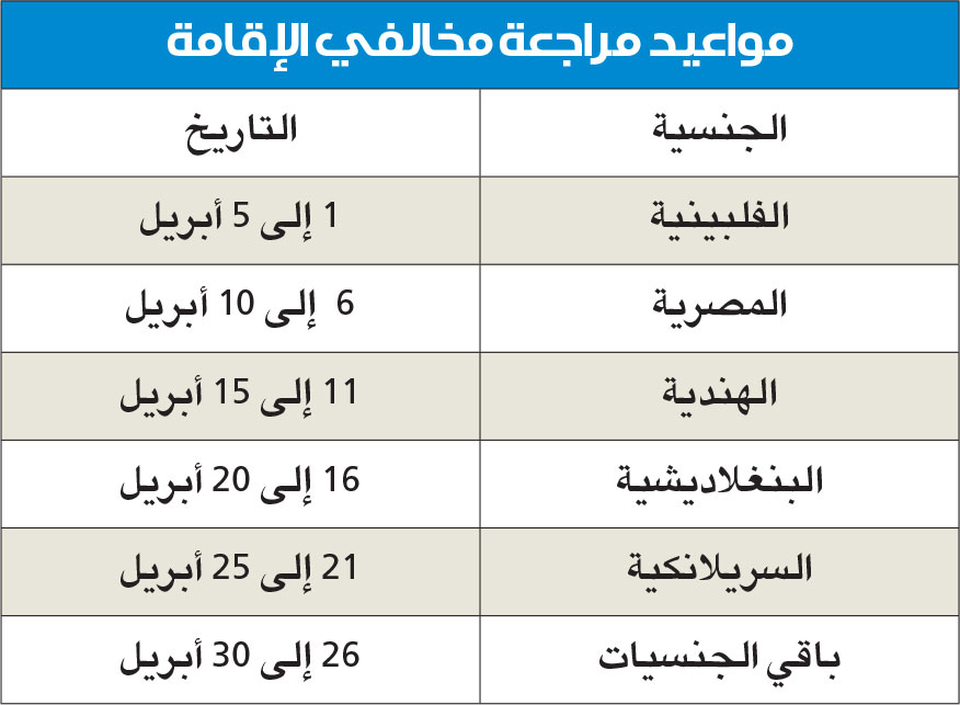 تأكيداً لما انفردت بنشره «الجريدة» في عددها أمس الأول، أعلنت الإدارة العامة للعلاقات والإعلام الأمني بوزارة الداخلية، أن نائب رئيس مجلس الوزراء وزير الداخلية أنس الصالح، أصدر قراراً يقضي بالسماح لمخالفي قانون الإقامة بمغادرة البلاد دون دفع أي غرامات مالية مترتبة عليهم، ودون تحمل تكاليف السفر وتذاكر الطيران، بالإضافة إلى إمكانية عودتهم إلى البلاد مرة أخرى.وأوضحت الإدارة، في بيان، أمس، أن هذا القرار يأتي في ظل الظروف الاستثنائية التي تمر بها البلاد، والإجراءات التي تتخذها الوزارة لمكافحة انتشــار فيروس كورونا، ولتراكم الغرامات المالية المترتبة على المخالفين لقانون الإقامة.وأكدت الإدارة أنه بشأن قرار الوزير فيما يخص الأشخاص الذين يبدون رغبتهم في منحهم إقامة بالبلاد، ولديهم استعداد لدفع الغرامة المقررة دون إحالتهم إلى جهات التحقيق، «يتم استيفاء قيمة الغرامة منهم ثم يتم تسوية أوضاعهم متى توافرت فيهم الشروط المقررة للإقامة، على أن تشمل الشرائح التالية فقط (زوجة المواطن الكويتي، والدي المواطنة الكويتية أو المواطن الكويتي من الأجانب، أبناء وأزواج المواطنات الكويتيات من الأجانب، المرأة الأجنبية أرملة أو مطلقة الكويتي التي لديها أبناء في حضانتها، العمالة المنزلية، الأجانب المخالفين لقانون إقامة الأجانب الموجودين في البلاد اعتباراً من تاريخ 1/3/2020)».