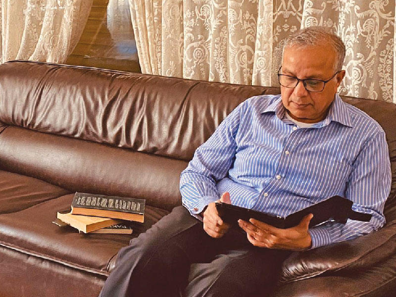 وحول ما يفعله بعد الساعة الخامسة، موعد بدء فرض حظر التجوّل، والذي يمتد حتى الساعة السادسة صباحاً، يجيب حيدر: «من الواضح أن روتيني الشخصي خارج المنزل تأثر بهذا الوضع، فتراني أتناول العشاء عند الخامسة، كما أن لدي مكتبة صغيرة في بيتي، وأشغل نفسي بقراءة الكتب والدراسات. ومن الساعة الخامسة، أبقى في منزلي بسبب فرض حظر التجول، وأبقى كذلك على اتصال مع المواطنين الباكستانيين المقيمين في الكويت من خلال هاتفي، وأحضّهم بانتظام على اتباع تعليمات الحكومة الكويتية نصاً وروحاً». وبالنسبة للهوايات أو الأنشطة التي يقوم بها أثناء حظر التجول اضافة الى كيفية تمضية وقته مع عائلته، يقول السفير الباكستاني: «بالنسبة لعائلتي، ترانا نجلس معا ونشاهد بعض البرامج التلفزيونية، ونناقش القضايا المحلية والدولية، كما اننا نتابع القنوات التلفزيونية الباكستانية.كما ان فترة حظر التجوّل أعطتني المزيد من الوقت لاستكشاف والتمتع بالكتب الجديدة التي أملكها منذ فترة طويلة، ولم أجد الوقت لقراءتها. وإلى جانب هذا، فإنني أمارس بعض الأنشطة الرياضية في منزلي، كالسباحة. وأستمتع بالأكل، ولكن في بعض الأحيان أستمتع أكثر بالطبخ. وقد أعطاني حظر التجول الوقت لتعلّم واكتشاف وصفات أكل جديدة». وتابع: «ان التفكير في الانعكاسات والتداعيات الجارية هي العناصر المهمة التي تجول في خاطري حالياً. وختاماً فإن الجانب الروحي في غاية الأهمية بالنسبة إلي، والفترة الحالية أعطتني المزيد من الوقت للتضرع والدعاء والصلاة».