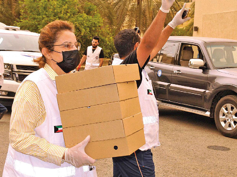 وقالت الأمينة العامة لجمعية الهلال الأحمر، مها البرجس، إن "الجمعية كانت في صدارة المشهد منذ اللحظات الأولى، جنبا إلى جنب مع وزارة الصحة ووزارات الدولة المختلفة".وكشفت البرجس لـ "الجريدة" أن إجمالي عدد المتطوعين في الجمعية بلغ 1252 متطوعا بواقع 909 ذكور و343 أنثى. وأعلنت توزيع 6 آلاف سلة غذائية على عمال المدارس وغيرهم من العاملين في عدد من مؤسسات الدولة، إضافة إلى توزيع نحو 25 ألف وجبة غذائية على العمال في أمغرة وصبحان والمهبولة وبنيد القار وشرق وغيرها حتى اللحظة. وقالت إن جميع المتطوعين لم يتوانوا عن تلبية نداء الواجب الإنساني ووهبوا جميع طاقاتهم لمساعدة المواطنين والمقيمين.لجنة داخلية