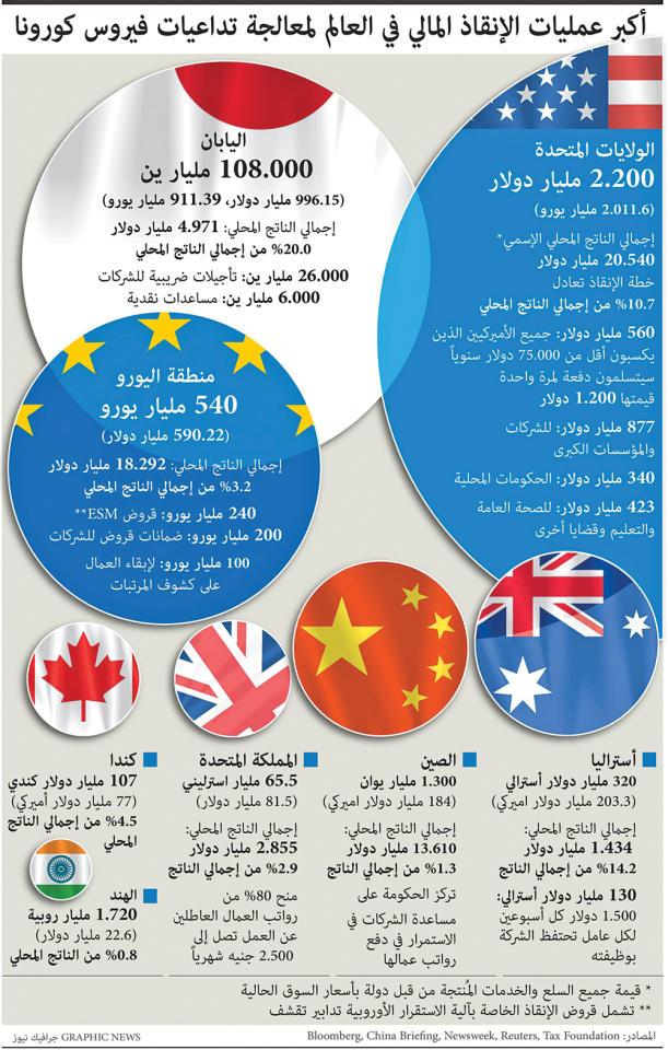 الاقتصادات الكبرى تنفذ أكبر عمليات الإنقاذ المالي لمعالجة تداعيات «فيروس كورونا»