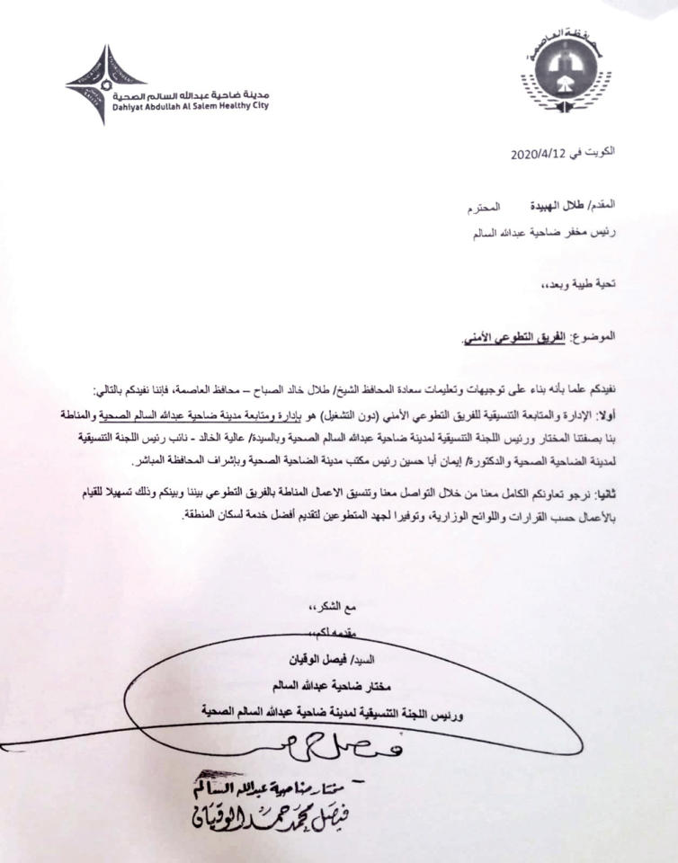 كتاب المختار الوقيان بشأن الفريق التطوعي الأمني