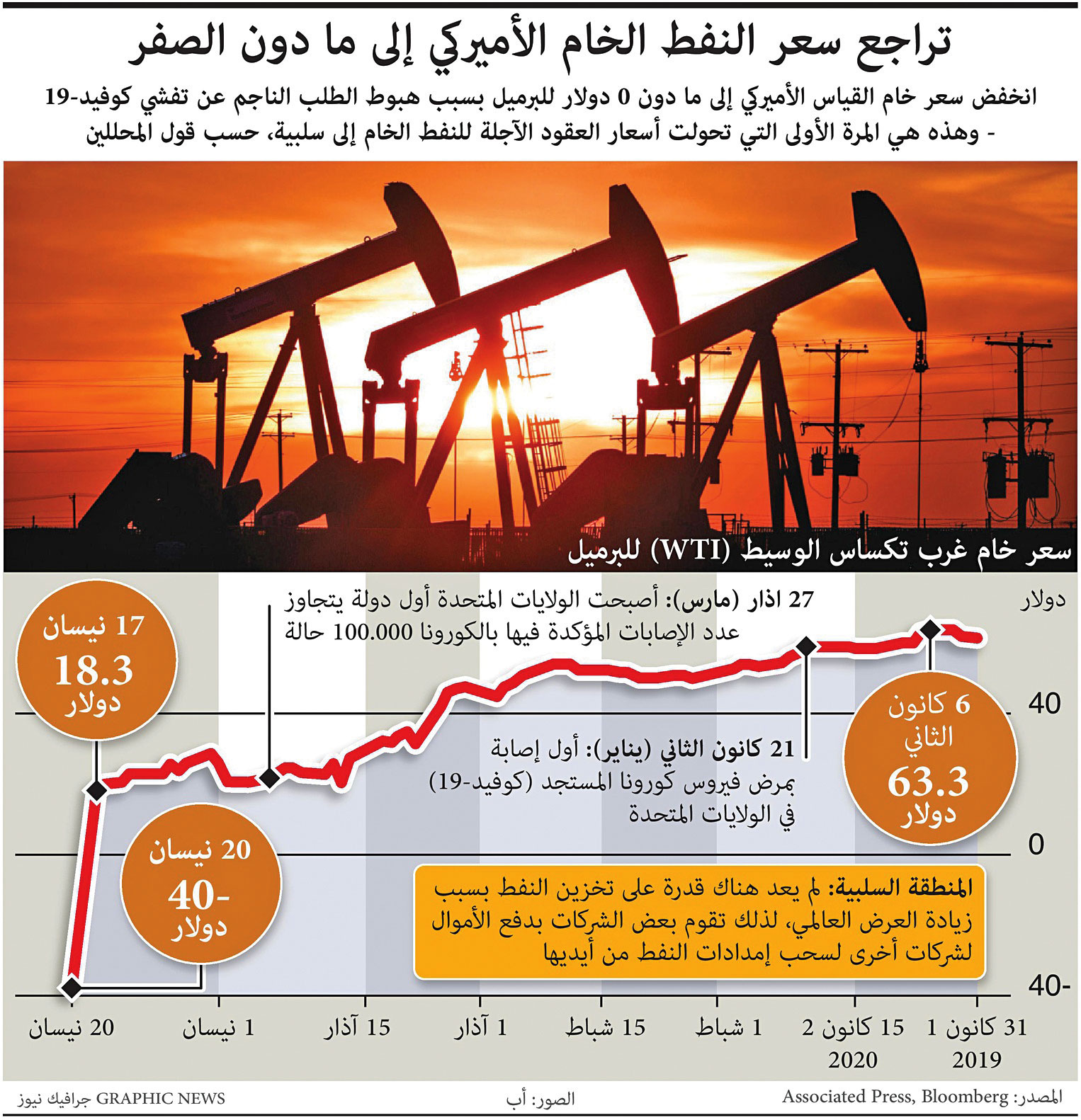 ونزلت أسعار النفط نحو 80 في المئة منذ بداية العام الحالي مع انتشار الوباء في أنحاء العالم، ليودي بحياة 180 ألف شخص تقريبا، ويعصف بالأسواق المالية، ويقود لما يحتمل أن يكون أسوأ تراجع اقتصادي منذ ثلاثينيات القرن الماضي.في السياق، انخفض سعر برميل النفط الكويتي 2.27 دولار، ليبلغ 14.72 دولارا في تداولات أمس الأول، مقابل 16.99 دولارا في تداولات الاثنين، وفقا للسعر المعلن من مؤسسة البترول الكويتية.وأدى التفشي الفيروسي إلى انخفاض الطلب على الوقود بنحو 30 في المئة عالميا، فيما تبحث شركات الطاقة بالولايات المتحدة، أكبر منتج في العالم، عن خزانات للنفط الزائد.وقال «غولدمان ساكس» في تقرير: «هذه نتيجة مباشرة لتزامن استثمار مفرط مع صدمة مفاجئة للطلب في مناطق ليس لها منافذ وتمتلك طاقة تخزين ونقل محدودة».وذكر محللون أن ارتفاع الأسعار في بداية الجلسة نجم عن أنباء تفيد بأن الدول الأعضاء في منظمة أوبك وعددا من حلفائها في مجموعة «أوبك+» أجرت مؤتمرا هاتفيا الثلاثاء. لكن الأسواق عادت إلى الواقع بسرعة.ويرى مراقبون أنه لا حل كبيرا لقطاع النفط، ما لم ينتهِ هذا الوباء. وقال جينغيي بان، الخبير الاستراتيجي في الأسواق بمجموعة «آي جي»، إن «المسار التراجعي العلني قد يبقي الأسعار منخفضة في الأمد القريب، حتى نرى الضوء في نهاية النفق، مع استئناف تدريجي للنشاط الاقتصادي المتوقف في جميع أنحاء العالم».وكان سعر خام غرب تكساس الوسيط تسليم مايو انهار يوم الاثنين للمرة الأولى في التاريخ إلى ما دون الصفر، (- 40.32 دولاراً للبرميل)، بعدما اضطر البائعون لأن يدفعوا للمشترين ليتسلَّموا النفط الخام منهم، في ظل امتلاء منشآت التخزين عن آخرها، وتراجع الطلب على الذهب الأسود، بسبب تداعيات الوباء. وانهارت أسعار خام غرب تكساس الوسيط، لأن مهلة إبرام عقود مايو انقضت الثلاثاء، ما أجبر المتعاملين على العثور على مشترين قبل انقضاء هذه المهلة.وأتى هذا التدهور غير المسبوق، نتيجة تداعيات فيروس كورونا، الذي دمَّر الاقتصاد العالمي، عبر إجبار مليارات الأشخاص على ملازمة منازلهم لوقف التفشي، وجراء حرب أسعار بين روسيا والسعودية.وأدت حرب الأسعار إلى تخمة في الاحتياطات الأميركية، وهو ما أثر سلباً على منتجي النفط الصخري في الولايات المتحدة.والثلاثاء، أعلنت منظمة أوبك أن العديد من دولها الأعضاء، إضافة إلى دول أخرى منتجة لا تنتمي إلى المنظمة، ناقشت عبر الفيديو «الوضع الصادم» لسوق الخام، والذي تجلَّى في تدهور تاريخي للأسعار على خلفية وباء «كوفيد-19».وشهدت أسواق المال في آسيا أسبوعا صعبا، رغم تعافيها إلى حد ما أمس. فقد تراجعت بورصات طوكيو 0.7 في المئة، وكل من سنغافورة وبانكوك 0.9 في المئة، ومثلها بورصة ولينغتن، التي انخفضت واحدا في المئة. كما سجلت بورصتا مانيلا وسيدني تراجعا أقل.لكن بورصات هونغ كونغ وشنغهاي ومومباي وسيول وتايبيه مع جاكرتا سجلت ارتفاعا، ومثلها أسواق المال في لندن وباريس وفرانكفورت.لكن الأسواق لم تتجاوب بشكل واضح مع موافقة مجلس الشيوخ الأميركي على إجراءات المساعدة للمتضررين من انتشار وباء فيروس كورونا، التي تبلغ قيمتها نحو نصف تريليون دولار، وتشمل مخصصات لتمويل الشركات الصغيرة والمستشفيات وزيادة الاختبارات على الصعيد الوطني.وما يزيد من القلق في قاعات البورصات، عدم اليقين الذي يحيط بالنتائج الفصلية فيما تحاول الشركات وضع تقديراتها تبعا لتطور انتشار الوباء.وقال كايكل كوجينو، الذي يعمل في مجموعة «باسيفيك أسيت منيجمنت»، لتلفزيون بلومبرغ: «لا طريقة لتوقع الأرباح في الوقت الحالي».وأضاف: «إنه أمر مستحيل عمليا حتى تصبح لدينا رؤية أفضل عن كيفية خروج العالم من الوباء على الجانب الآخر».وفي هونغ كونغ، تدخل البنك المركزي لبيع الدولار المحلي ليوم ناجح ثانٍ على التوالي للدفاع عن ارتباطه بالدولار الأميركي.