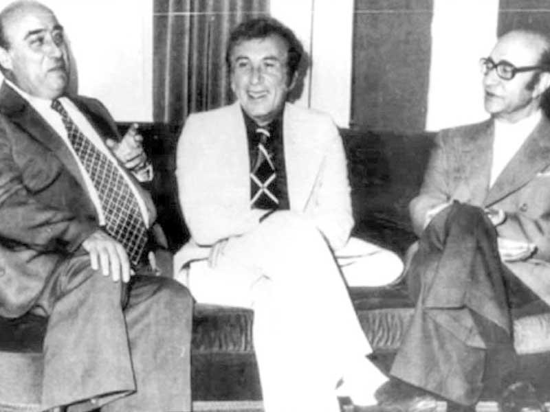 صورة تجمع الموسيقار محمد عبدالوهاب والشاعر نزار قباني والفنان وديع الصافي
