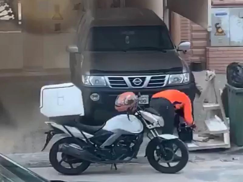 ضبط عامل توصيل تعبث بالقمامة وطعام عميل أثناء توصيله الطلب