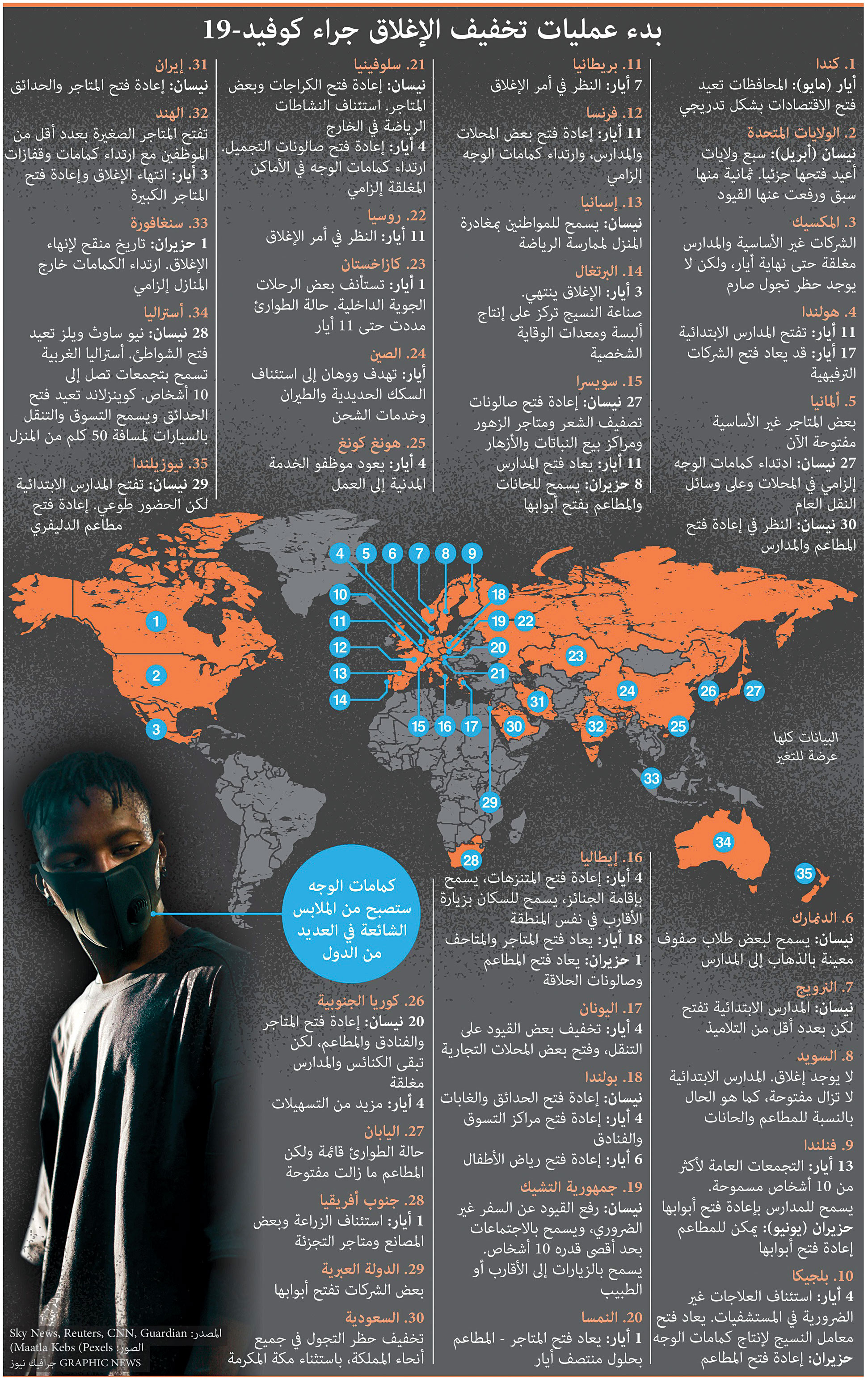 وفي السعودية، صرح مصدر مسؤول بوزارة الداخلية بأنه تقرر السماح بالدخول إلى محافظة القطيف والخروج منها بداية من أمس، إضافة إلى استمرار السماح بالتجول من التاسعة صباحا حتى الخامسة مساء.ونقلت وكالة الأنباء السعودية الرسمية (واس) عن المصدر تأكيده استمرار عمل الأنشطة المستثناة، والعمل بالإجراءات الوقائية الاحترازية الصحية، التي سبق إعلانها.