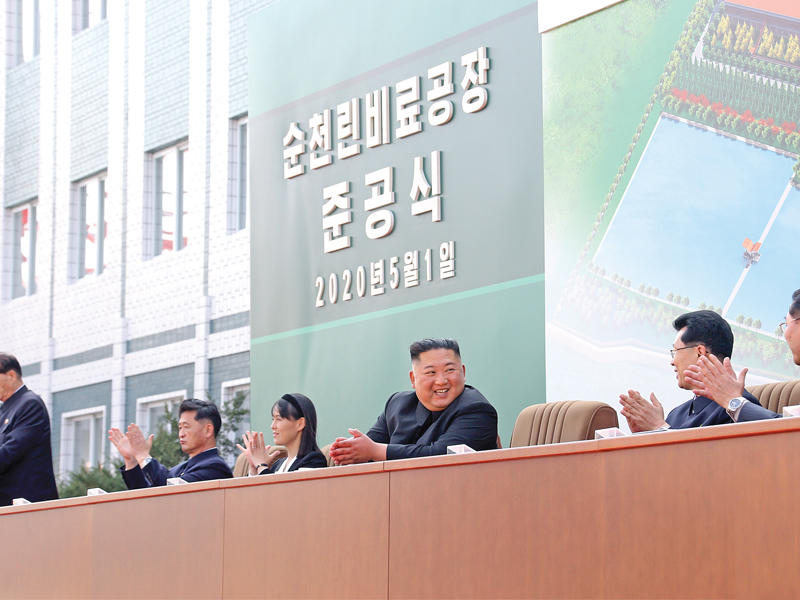 في أوّل ظهور له عبر الإعلام الرسمي منذ سريان تكهّنات بشأن صحّته الشهر الماضي، قصّ الزعيم الكوري الشمالي كيم جونغ أون شريط افتتاح مصنع سون تشون للأسمدة الفوسفاتيّة في مقاطعة بيونغان الشمالية، بحضور بارز لشقيقته كيم يو جونغ، التي تواترت الأنباء عن أنها قد تكون الخليفة المحتملة له.وعرضت وسائل الإعلام في كوريا الشمالية، أمس، صوراً للزعيم كيم وهو يشارك في حفل بمناسبة إنهاء العمل في إنشاء مصنع للسماد في مدينة سونشون (50 كلم) شمال بيونغ يانغ، مشيرة إلى أنّه "حضر الاحتفال وتفقّد المصنع أيضاً، حيث تمّ "اطلاعه على عمليّة الإنتاج" فيه أمس الأول، وسط هتاف المشاركين وتصفيقهم.ومنذ صدور تقرير في صحيفة "دايلي ان كيه" بكوريا الجنوبية، في أبريل الماضي، عن أن كيم خضع لجراحة في القلب، في أعقاب غيابه الواضح عن بعض الأحداث المهمة، كان المراقبون للشأن الكوري يتساءلون عن مصيره.
