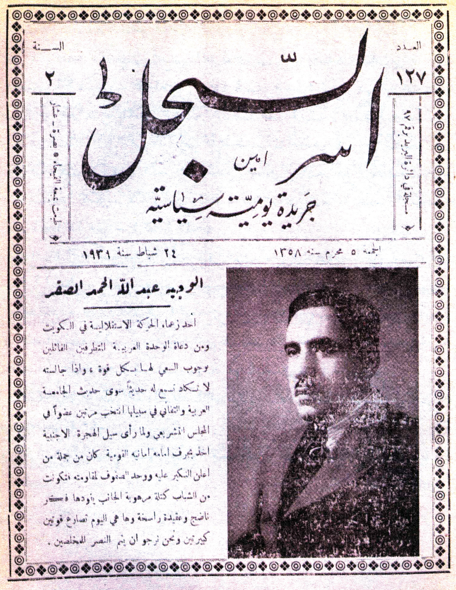 كانت جريدة السجل العراقية من أكثر الجرائد العراقية تناولاً لقضية مجلس الأمة التشريعي سنة 1938-1939م، حيث كان لها مراسلون في الكويت، وكان يكتب فيها بعض الكويتيين من النواب أو المؤيدين لهذه الحركة.