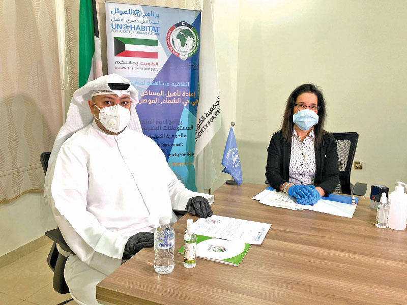 «موئل الأمم المتحدة» يتسلّم مساهمة الجمعية الكويتية للإغاثة لتأهيل مساكن الموصل
