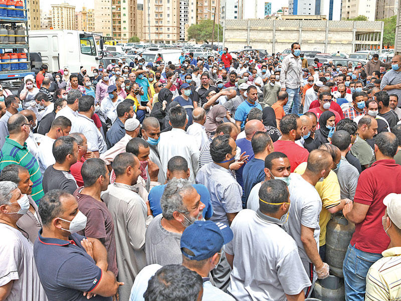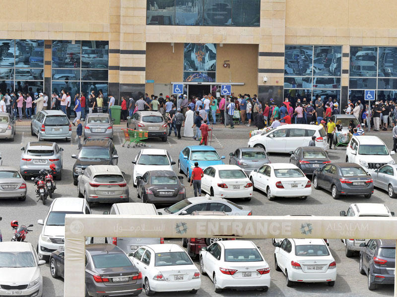 "الجريدة" رصدت حالة الاختناق والازدحام التي انتابت، أمس، شتى المناطق السكنية إذ تجمع الناس في طوابير طويلة للدخول إلى الجمعيات أو الأسواق المركزية وفروع الغاز والتموين.