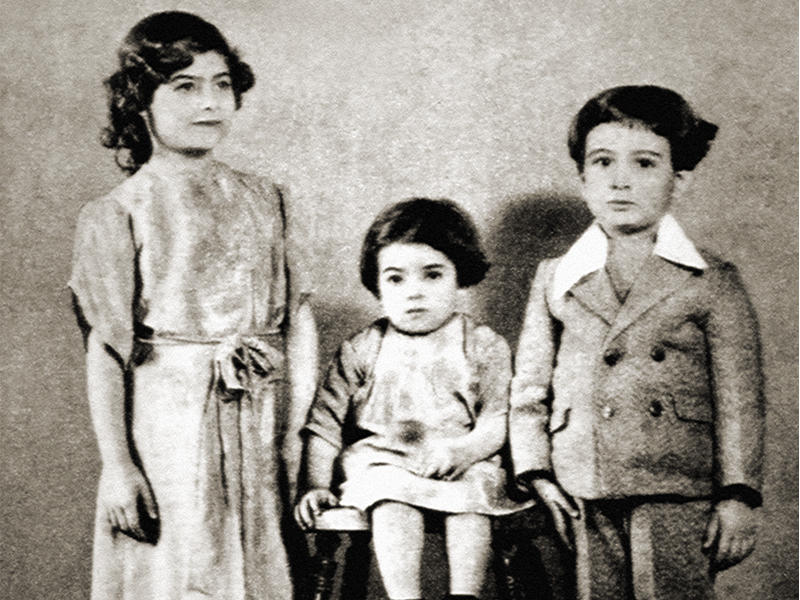 الفنانة نجاة الصغيرة في سن عامين بين شقيقتها سميرة وشقيقها فاروق