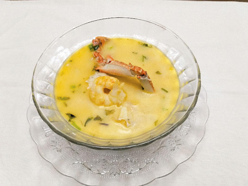 في إناء على النار نضع ملعقة كبيرة زبدة، ونضيف إليها مجموعة الـ «سي فود» عدا السمك الفيليه، ثم نضع البصلة والملح والفلفل ونشوِّح كل المكونات جيداً، ثم نضيف مرق الخضراوات، ونترك الإناء إلى أن ينضج محتواه، ثم نضيف السمك الفيليه ونتركه مدة 7 دقائق أخرى على النار، ثم نضيف عصير الليمون والكريمة اللبَّاني والشبث وملعقة صغيرة من الزبدة، ونترك الخليط يغلي مدة 3 دقائق أخرى، ثم نغلق النار. عصير الليمون بالنعناع