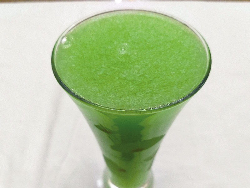نخفق كل المقادير في الخلاط الكهربائي لمدة دقيقة، ونصفّيها ونقدم العصير في كؤوس. السلطة البلدي