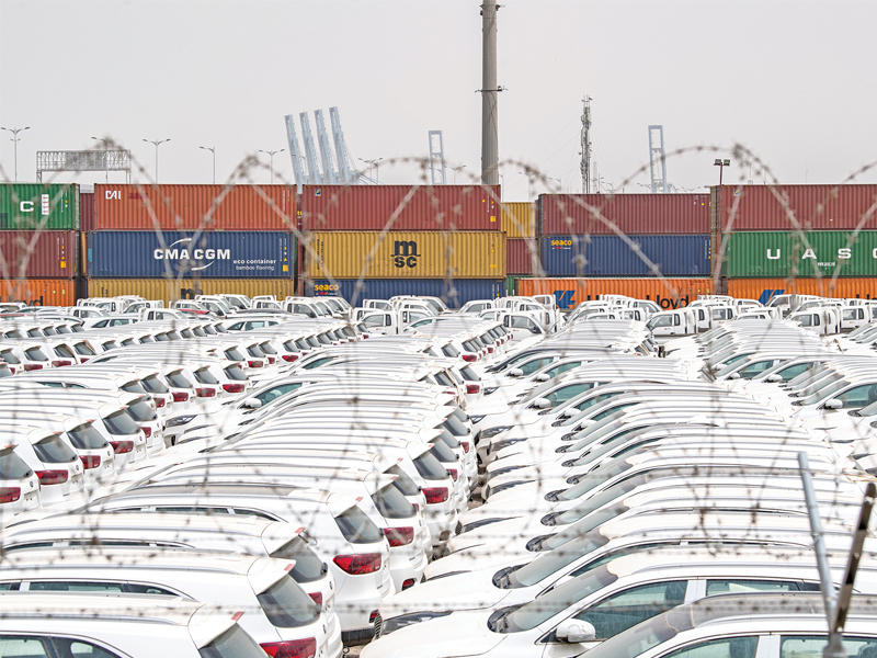 مركبات دخلت إلى ميناء الشويخ قبيل فرض الحظر وربضت في المواقف المخصصة لها بانتظار الفرج من عند الله، ولسان حالها يكاد ينطق غيظاً: آه يا "كورونا"! والصورة بعدسة عبدالمجيد الشطي.