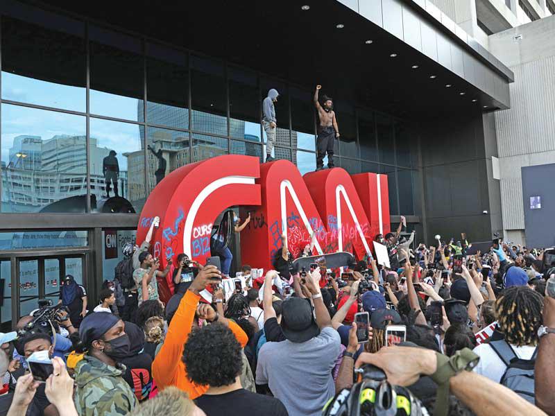 وفي سلسلة تغريدات، أوضح كيمب أن إعلان حالة الطوارئ جاء بناء على طلب من كيشا لانس بوتومز عمدة مدينة أتلانتا (عاصمة الولاية)، من أجل "حماية الأفراد والممتلكات"، مؤكداً أن مسؤولي إنفاذ القانون "يعملون بدأب للقضاء على الأنشطة غير القانونية واستعادة الهدوء"، مضيفاً أنه سيواصل إتاحة جميع الموارد للمسؤولين خلال حالة الطوارئ.وانتقلت شرارة التظاهرات إلى العاصمة واشنطن، وخلال تجمّعهم أمام البيت الأبيض، طالب مئات المتظاهرين بـ"العدالة لجورج فلويد"، ملوّحين بشعارات بينها "توقّفوا عن قتلِنا" و"حياة السود مهمّة".وفي ميشيغان، أعلنت المتحدثة باسم شرطة ديترويت السارجنت نيكول كيركوود أمس، مقتل شخص في وسط المدينة بعد أن أطلق شخص يستقل سيارة رياضية متعددة الأغراض "إس يو في" النار على حشد من الناس من المحتجين انضموا إلى مسيرة ضد "وحشية الشرطة" خارج مقر السلامة العامة ورددوا "لا عدالة لا سلام". وبينما تمّ إغلاق طريق سريع في دنفر عاصمة ولاية كولورادو، تجمّع آلاف المحتجين عند مركز باركليز في نيويورك للتّنديد بما حصل لفلويد على أيدي الشرطة.وفي لويزفيل بولاية كنتاكي، دارت اشتباكات في وقت كان عدد من السكّان يُطالبون بالعدالة لبريونا تايلور وهي امرأة سوداء قتلتها الشرطة داخل شقّتها في مارس.وفي لوس أنجلس، أغلق المتظاهرون لفترة قصيرة طريقا سريعا وحطموا زجاج نوافذ آليتين للشرطة. وفيما اندلعت احتجاجات مماثلة في هيوستن بولاية تكساس، هاجم المتظاهرون مقر "سي إن إن" في مدينة أتلانتا. وبثت الشبكة الإخبارية لقطات مباشرة من مقرها تظهر استهداف عناصر الشرطة أمام المقر ومحاولة تحطيم نوافذه.وفي وقت سابق، اعتقلت الشرطة طاقم الشبكة خلال قيامه بتغطية حية من مدينة مينيابوليس لأعمال العنف. وبثت مقطع فيديو لمراسلها عمر جيمينيز وهو يتحدث بهدوء لرجال شرطة يحملون هراوات ويكبلون يديه بالأصفاد قبل أن يطلقوا سراحه لاحقاً ويعود لبث رسائله المباشرة .