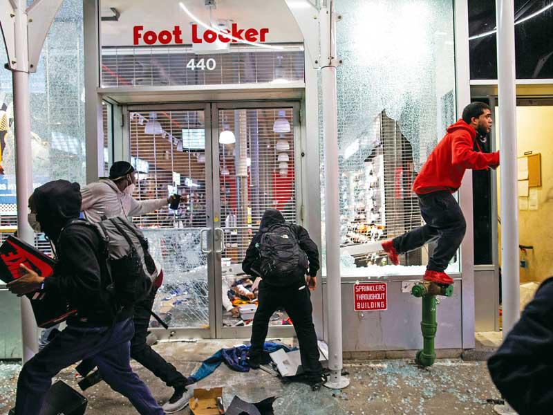 وفي الوقت الذي تكافح فيه الولايات المتحدة لاحتواء الاحتجاجات الفوضوية على التمييز العرقي وأساليب الشرطة، فرضت السلطات حظر التجول على عشرات المدن في جميع أنحاء الولايات المتحدة، وهو أكبر عدد منذ عام 1968 في أعقاب اغتيال مارتن لوثر كينغ الابن، الذي حدث أيضا خلال حملة انتخابات رئاسية ووسط اضطرابات المظاهرات المناهضة للحرب. ولليوم السادس على التوالي، دارت مواجهات في أكثر من عشرين مدينة وشهدت ولاية كاليفورنيا أعمال نهب واخترقت شاحنة مسيرات في منيابوليس واشتبك متظاهرون مع الشرطة في بوسطن وواشنطن العاصمة.وبعد ظهر أمس الأول، اخترقت شاحنة حشداً على الطريق السريع 35 في منيابوليس المغلق أمام حركة المرور. وسحب المتظاهرون السائق وضربوه قبل أن تحتجزه شرطة.وانتشرت عمليات السطو والسرقة في وسط مدينة واشنطن وكذلك في لوس أنجلس وأماكن أخرى حيث استغلت بعض العصابات الاحتجاجات وحولتها إلى عمليات عنف منظمة. واقتحم المتظاهرون فرعاً لبنك "كابيتال بنك"، وشوهدت صناديق مجوهرات فارغة على الرصيف خارج متجر "ميرفيس داياموندز".وفي لوس أنجلس، جرت عمليات نهب كبيرة للمتاجر والمحال في مدينة سانتا مونيكا السياحية الشهيرة، قامت بها عصابات مستغلة الوضع الأمني جراء الاحتجاجات.وأعلنت عمدة شيكاغو لوري لايتفوت أن الحظر الليلي سيظل سارياً "حتى إشعار آخر" وأصدرت أوامرها إلى جنود الحرس الوطني بالمساعدة في إخماد الاضطرابات، مؤكدة أن مثيري أعمال العنف يجب أن "يخجلوا من أنفسهم".وبينما أطلقت الشرطة الغاز المسيل للدموع في محاولة لتفريق حشود تجمّعت خارج البيت الأبيض وهم يهتفون ويشعلون النيران ويحملون لافتات احتجاجيّة، دعا قادة محليون المواطنين للتعبير عن غضبهم بشكل بناء.وزار المرشح الديمقراطي للرئاسة جو بايدن أمس الأول موقعاً يحتج فيه مناهضون للعنصرية، في ولاية ديلاوير، قائلاً إن الولايات المتحدة "تتألم". وكتب بايدن في تويتر "نحن أمة تتألم الآن، ولكن يجب ألا نسمح لهذا الألم بتدميرنا".وعلى غرار عدة مدن بينها لوس انجليس وهيوستون وشيكاغو وأتلانتا، أعلن رئيس بلديّة العاصمة موريل باوزر فرض حظر التجوّل في واشنطن إثر خروج التظاهرات قرب البيت الأبيض، مؤكداً أنه أمر بنشر الحرس الوطني في المدينة لدعم الشرطة.إلى ذلك، أفادت صحيفة "نيويورك تايمز" أن ما لا يقل عن 5 أشخاص لقوا مصرعهم في الاحتجاجات أغلبهم في مدينتي ديترويت وإنديانابوليس، مبينة أن قوات الأمن أوقفت حتى الآن أكثر من 4400 متظاهر.وقال المتحدث باسم شرطة إنديانابوليس مايكل هيويت إن سبب هذه الوفيات لم يتضح بعد، مضيفاً: "ما من سبيل لربط هذه الوفيات، في الوقت الحالي، بأي نوع من الاحتجاجات أو أي شيء، نحن لا نعرف ما إذا كانت حوادث منفصلة".من جهة ثانية، أعلنت عمدة مدينة أتلانتا كيشا لانس بوتومز فصل ضابطي شرطة ظهرا بمقطع فيديو على وسائل التواصل الاجتماعي يقتربان من سيارة طلاب جامعيين ويحطمون نافذة سائقها ويضربونهم قبل اجتذابهم بعنف منها مساء يوم السبت، واصفة هذا الأمر بأنه "مزعج جدا واستخدام غير مقبول على الإطلاق مفرط للقوة". وفي نيويورك اعتقلت الشرطة 350 شخصاً بينهم ابنة رئيس البلدية بيل دي بلاسيو البالغة من العمر 25 عاماً، وأصيب 30 شرطياً بجروح في اشتباكات. وفي الساحل الغربي، وقعت اشتباكات في بورتلاند بولاية أوريغون حيث أظهرت لقطات تلفزيونية حرائق صغيرة مستعرة فيما أطلقت الشرطة الغاز المسيل للدموع على متظاهرين أطلقوا ألعاباً نارية.
