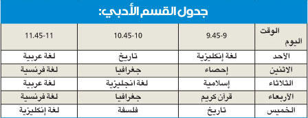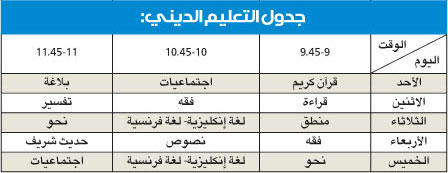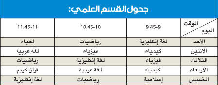 3 حصص يومياً بواقع 45 دقيقة للحصة الواحدة
