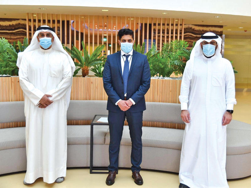 نائب رئيس مجلس إدارة مستشفى الكويت محمد الحبيل ورئيس قسم الأطفال بمستشفى العدان (رئيس الفريق) سلمان الطوالة ومنسق اللجنة التنفيذية جراح الناصر