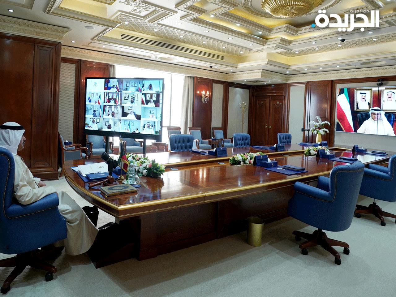 عقد مجلس الوزراء اجتماعه الأسبوعي بعد ظهر اليوم الاثنين عبر الاتصال المرئي برئاسة سمو الشيخ صباح خالد الحمد الصباح رئيس مجلس الوزراء وبعد الاجتماع صرح نائب رئيس مجلس الوزراء ووزير الداخلية ووزير الدولة لشؤون مجلس الوزراء أنس خالد ناصر الصالح بما يلي:"أحاط سمو رئيس مجلس الوزراء المجلس علما في مستهل اجتماعه بفحوى لقائه الإيجابي مع كل من رئيس مجلس الأمة مرزوق علي الغانم ورئيس المجلس الأعلى للقضاء المستشار يوسف جاسم المطاوعة يوم أمس وذلك استمرارا للقاءات والزيارات التي يقوم بها سموه لتجسيد وتعزيز التعاون بين السلطات الثلاثة التشريعية والتنفيذية والقضائية ترجمة لتوجيهات حضرة صاحب السمو الأمير حفظه الله ورعاه وتفعيلا للمادة (50) من الدستور وقد جرى خلال هذه اللقاءات تبادل الآراء وعرض الرؤى خاصة في ظل الأزمة التي تمر بها البلاد أسوة بدول العالم كافة بسبب جائحة كورونا (كوفيد 19) وكذلك استعرض الاجراءات الحكومية وجهودها لمكافحة هذا الوباء.وقد أشاد مجلس الوزراء بهذه اللقاءات الإيجابية المثمرة التي تجسد حرص الحكومة والرغبة الصادقة في التعاون والعمل البناء بشفافية كاملة من أجل الكويت الغالية وأهلها الأوفياء.ثم شرح وزير الصحة الشيخ الدكتور باسل حمود الصباح للمجلس الوضع الصحي في البلاد متضمنا البيانات والاحصاءات الخاصة بأعداد حالات الإصابة والشفاء والوفاة وبالإجراءات الاحترازية التي تتخذها وزارة الصحة للحد من تفشي انتشار فيروس كورونا المستجد في البلاد كما أحاط المجلس علما بالمؤشرات الإيجابية الناجمة عن تنفيذ الحظر الشامل.