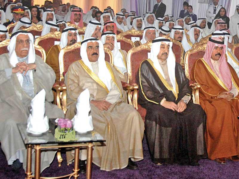 سمو ولي العهد الشيخ نواف الأحمد خلال افتتاح مبنى الشيخ سعد للطيران بحضور العتيقي وفيصل السعود وجاسم الخرافي وجابر العبدالله