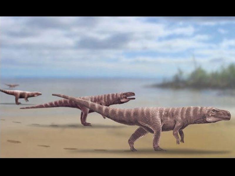 عثر علماء الحفريات في كوريا الجنوبية على آثار حيوان عملاق شبيه بالتمساح، عاش قبل أكثر من 100 مليون سنة، كان يمشي منتصباً على قدمين.وتفيد مجلة Scientific Reports في عددها الأخير، والذي نقله موقع روسيا اليوم، أمس، بأن علماء من جامعة كوينزلاند الأسترالية، برئاسة أنتوني روميليو، اكتشفوا آثار أقدام حيوان عملاق مقاسها 18-24 سنتيمتراً، عاش قبل 110-120 مليون سنة في آسيا الحالية. ووفقاً للعلماء، استناداً إلى هذه المقاييس، كان طوله 3-4 أمتار.