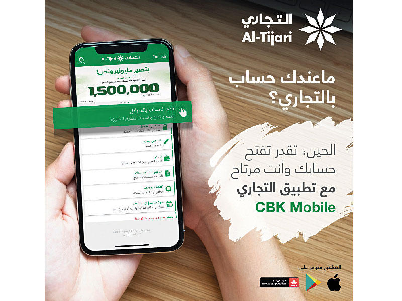 في إطار سعي البنك التجاري الكويتي الدائم لتعزيز التواصل مع العملاء وتوفير أفضل الخدمات المصرفية لهم باستخدام أفضل المنصات الالكترونية تأكيداً لأهمية الرقمنة المصرفية، أعلن التجاري اطلاق خدمة فتح الحساب عبر تطبيق البنك على الهواتف الذكية CBK mobile وذلك للعملاء الأفراد بحيث يستطيع العميل فتح حسابه من أي مكان بطريقة سهلة وسريعة وآمنة ومن خلال خطوات سهلة وبسيطة.وبهذه المناسبة، صرحت المدير العام بالوكالة – بقطاع الخدمات المصرفية للأفراد – هنادي المسلم قائلة "نحرص دائماً في البنك التجاري على توسيع استخدام القنوات الإلكترونية لتقديم خدمات مصرفية مميزة لعملاء مصرفنا وجذب واستقطاب المزيد من العملاء الجدد وكذلك تلبية احتياجاتهم المصرفية مع توفير الوقت والجهد في إتمام العمليات المصرفية دون الحاجة للذهاب إلى الفرع من خلال تطبيق التجاري على الهواتف الذكية CBK Mobile التي تمكن العميل من فتح الحساب بطريقة سهلة، سريعة وآمنة من خلال اتباع خطوات بسيطة".