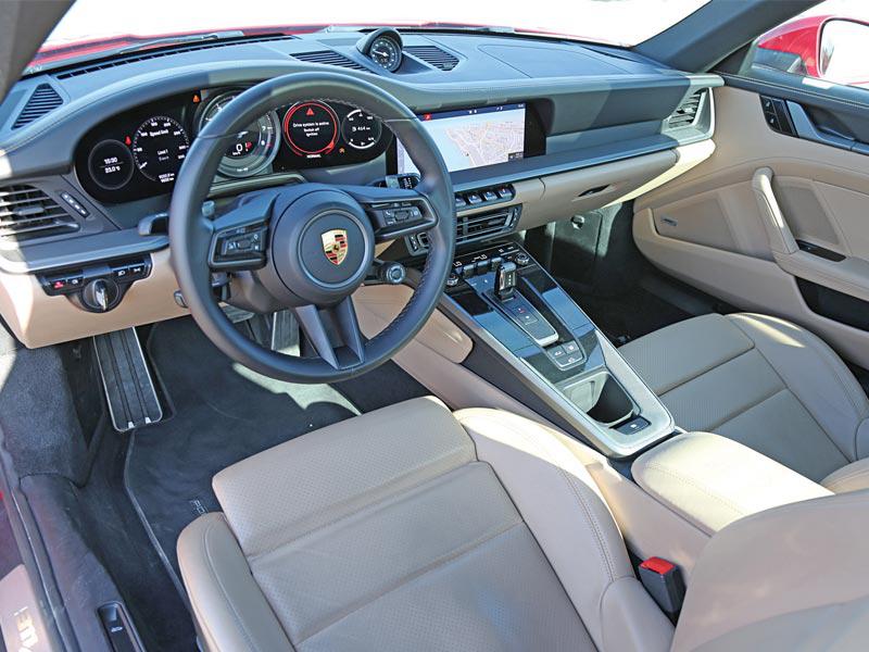 ويتميز التصميم الجديد كلياً للمقصورة بتفاصيل واضحة وخطوط مستوية في لوحة القيادة التي زودت بأدوات التحكم المستوحاة من طرازات 911 من حقبة سبعينيات القرن الماضي. وتبرز إلى جانب لوحة العدادات المركزية، التي تعتبر مثالية في سيارات بورشه، شاشتان رفيعتان بدون إطار لتزويد السائق بالمعلومات اللازمة.وأصبح قياس الشاشة الوسطى المخصصة لنظام بورشه لإدارة الاتصالات (PCM) 10.9 بوصة وبات بالإمكان تشغيلها بسهولة دون تشتيت انتباه السائق بفضل التصميم الجديد للمقصورة. وأسفل هذه الشاشة توجد مجموعة مدمجة بخمسة أزرار من أجل الوصول المباشر إلى الوظائف المهمة في السيارة. كما خضع تصميم المقاعد أيضاً للتعديل الجذري.تحسينات ديناميكية