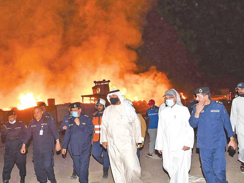 وأشاد سموه بتفانيهم في أداء واجباتهم بكل مهنية وإخلاص، سائلاً سموه رعاه الله المولى تعالى أن يحفظ الوطن العزيز من كل سوء ومكروه ويوفق الجميع لخدمته.وبعث سمو ولي العهد الشيخ نواف الأحمد ببرقيات شكر مماثلة أشاد فيها بالجهود الكبيرة التي بذلها رجال الإطفاء ورجال الشرطة والجيش والحرس الوطني للسيطرة وإخماد الحريق.من جهتها أوضحت إدارة العلاقات العامة والإعلام بـ "الإطفاء"، في بيان، أمس، أنها تلقت بلاغا في الساعة 7:35 مساء امس الأول، يفيد بوقوع الحريق، فتعاملت معه 8 فرق للاطفاء، بمشاركة إطفاء الجيش ووزارة الداخلية والحرس الوطني والطوارئ الطبية وشركة البترول الوطنية ومؤسسة الموانئ.وأضافت الإدارة أن رجال الإطفاء استطاعوا السيطرة على الحريق رغم انه نشب في منطقة مكشوفة على مساحة واسعة، مع وجود الرياح، مما صعب عملية مكافحة الحريق التي تمت دون وقوع أي اصابات بشرية. وأشارت إلى أن تطبيق خطة المكافحة بعزل المنطقة المشتعلة، وتفعيل خطة الطوارئ لإدارة الحوادث الكبرى، وخطة الطوارئ العامة للدفاع المدني، ساهم في تقليل حجم الخسائر بشكل كبير، مضيفة أن عملية إخماد الحريق كانت بإشراف المدير العام لـ "الاطفاء" الفريق خالد المكراد، وبقيادة نائب المدير العام لقطاع المكافحة اللواء جمال البليهيص.وأفادت بأنه حضر إلى موقع الحريق نائب رئيس الوزراء وزير الداخلية انس الصالح ووزير الدولة لشؤون الخدمات وزير الدولة لشؤون مجلس الأمة مبارك الحريص، ووكيل وزارة الداخلية الفريق عصام النهام، والمدير العام لمؤسسة الموانئ الشيخ يوسف العبدالله، والمدير العام للهيئة العامة للبيئة الشيخ عبدالله الأحمد، وعدد من قيادات الاطفاء والجهات العسكرية والجهات المشاركة في عملية اخماد الحريق.واصدر الوزير الحريص تعليماته بتشكيل لجنة تحقيق عاجلة من ادارة الفتوى والتشريع والهيئة العامة للبيئة والادارة العامة للاطفاء للوقوف على أسباب اندلاع الحريق وتقدير الخسائر الناجمة عنه ورفع تقريرها لاتخاذ اللازم.