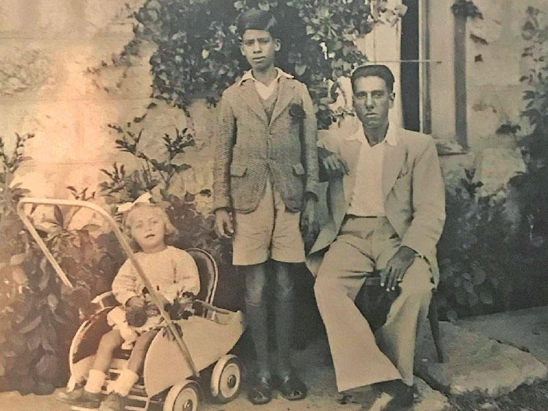 وفي عام 1944 سافر الوالد إلى لبنان، مصطحباً معه شقيقي الأكبر بدر، وأدخله في القسم الداخلي بالكلية، بعد مقاومة شديدة من بدر، لرفضه الالتحاق، ورغبته في العودة إلى الكويت. لكنّ الوالد أدخله بالقوة، وذهب إلى بلدة قريبة من برمانا، تُعرف باسم بكفيا.وفي بكفيا تعرَّف إلى الشيخ رؤول الجْمَيّل، وهو شقيق بيار الجْمَيّل، مؤسس حزب الكتائب اللبناني، وأصبحت بينهما ألفة وصداقة. وتشاء المصادفة أن يأتي الشيخ رؤول إلى الكويت في الخمسينيات، ويعمل مديراً عاماً لشركات عائلة الحمد الكريمة، وظلَّ بالكويت إلى ما بعد التحرير، إلى أن توفّاه الله بالكويت بعد عُمر طويل.بعد أسبوع من التحاق أخي بدر بالكلية، ورد للوالد اتصال منها، للحضور حالاً، ويبدو لأمر جلل، فقد أضرب الأخ بدر عن الطعام، ورفض الانصياع للتعليمات الدقيقة من الكليّة، وأعلن رغبته في العودة للكويت... وتحقّق له ما أراد. ويبدو لي أنه لا يُلام على ذلك، نتيجة العزلة التامة في السكن الداخلي، واختلاف طبيعة وكلام وديانة وتصرّفات مَنْ حوله، ولعلّ ذلك خير أراده له الله، واستفاد عند عودته للكويت، وحقّق طموحاته في الحياة.بالنسبة للصورة، التُقطت في بلدة بكفيا اللبنانية، ويبدو الوالد مع الشقيق بدر. أما الطفلة، فهي إحدى بنات عائلة الجْمَيّل اللبنانية.