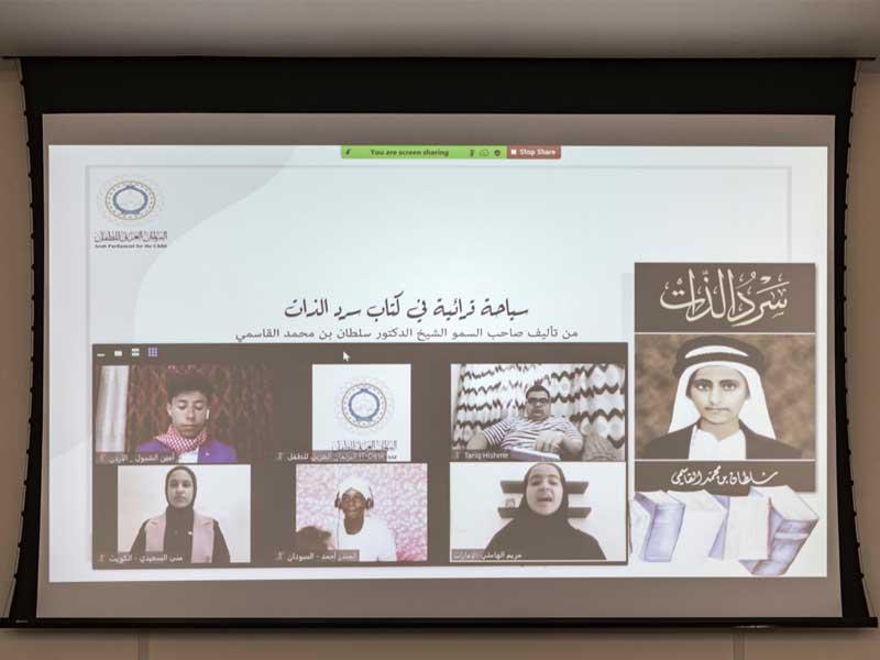 نظمت الأمانة العامة للبرلمان العربي للطفل أول نشاط ثقافي للجنة الأنشطة بالبرلمان، عبر إقامة حلقة قرائية إبداعية (عن بُعد) بعنوان "سياحة قرائية"، بمشاركة أعضاء 12 دولة عربية، بينها الكويت، استعرضوا خلالها كتاب "سرد الذات" للشيخ د. سلطان القاسمي عضو المجلس الأعلى حاكم الشارقة.وقدم أعضاء البرلمان، بعد جلسة قرائية شملت العديد من المختارات الأدبية من كتاب "سرد الذات"، عددا من وجهات النظر، وأعربوا عن إعجابهم بمحتواه، وما يتضمنه من مهارات فكرية تعزز الرصيد الثقافي واللغوي والاجتماعي والتراثي عن الإمارات، وتبني في الوقت نفسه ملكة أدبية متميزة للقارئ.