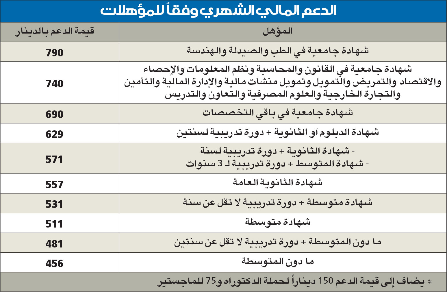 • الدعم الشهري 790 ديناراً لحملة شهادات الطب والصيدلة والهندسة