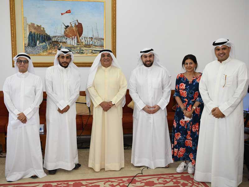 رئيس غرفة التجارة والصناعة، رئيس مجلس العلاقات العربية والدولية، عضو مجلس الأمة السابق محمد جاسم الصقر وفارعة السقاف مع عدد من الشباب خلال اللقاء (تصوير عوض التعمري)