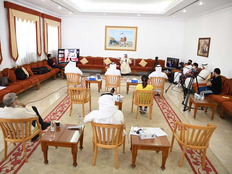 رئيس غرفة التجارة والصناعة، رئيس مجلس العلاقات العربية والدولية، عضو مجلس الأمة السابق محمد جاسم الصقر متحدثاً خلال اللقاء وسط اجراءات التباعد