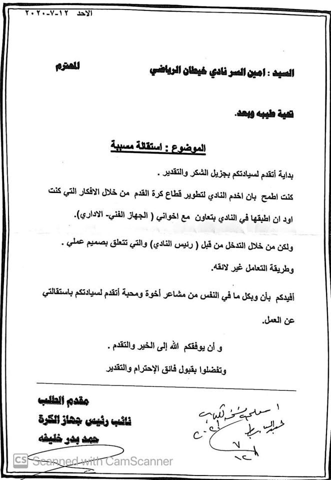 نائب جهاز الكرة في خيطان يستقيل اعتراضاً على سياسة الرئيس