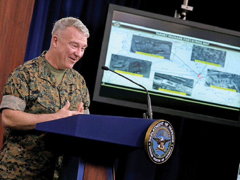 أطلق قائد المنطقة الوسطى في الجيش الأميركي (سنتكوم)، الجنرال كينيث ماكينزي جملة من المواقف، في خضم جولة بالمنطقة، شملت حتى الآن الكويت والسعودية والبحرين وقطر والأردن ولبنان والعراق وشمال سورية، هدفها مناقشة التحديات الأمنية المشتركة. ورغم رفضه الإجابة عن أسئلة تتعلق بالحوادث الغامضة في إيران، وبينها الانفجار في موقع نطنز النووي، فضلاً عن الهجوم المحدود الذي استهدف معدات أميركية في جنوب العراق، والتصعيد الحوثي ضد السعودية، اللذين رأى مراقبون أنه قد يكون وراءهما «طلائع» رد إيراني، كان ماكينزي حازماً لجهة تحذير طهران من أن أي استهداف للقوات الأميركية سيكون ثمنه باهظاً. وقال ماكينزي، في مؤتمر صحافي عبر الهاتف نظمه المكتب الإقليمي الإعلامي للخارجية الأميركية، وشاركت فيه «الجريدة» أمس، إن «الكويت هي شريك رئيسي ومهم لنا بالمنطقة، في دعمها لنا وللتحالف العالمي لمكافحة الإرهاب، ونعتبرها أهم موقع استراتيجي لقواتنا ولقواعدنا في المنطقة، ويسمحون لنا بالتحرّك بحرية مطلقة وحسب اللزوم».