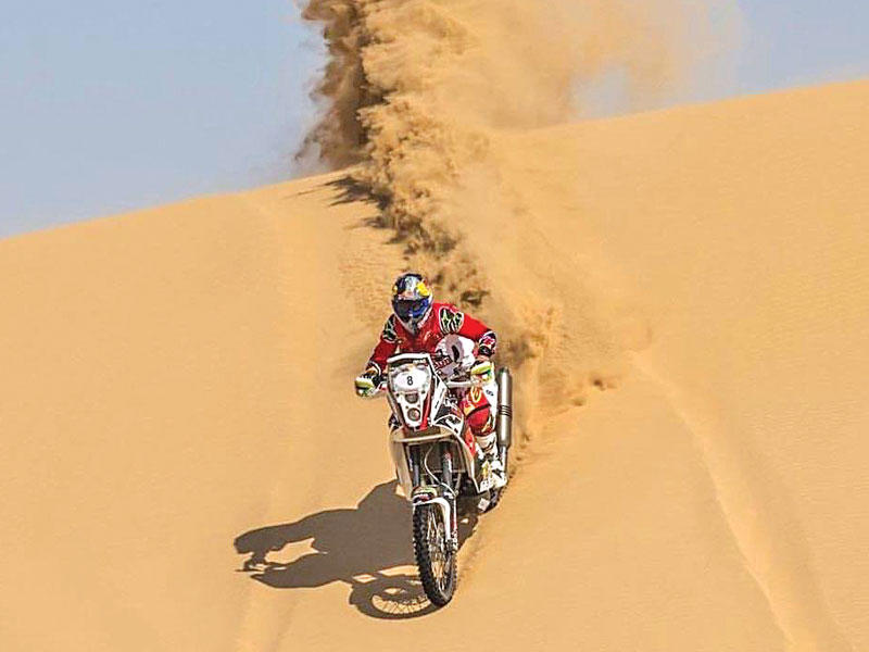 - أولا لابد من إيضاح الفرق بين الاثنين الدراجات النارية (الموتوكروس) تقام منافساتها داخل الحلبات بنوعية خاصة من الدراجات، أما الراليات فتقام في الصحراء المفتوحة بنوعية مختلفة، ثانيا أنا مغامر بطبيعتي، وأسعى دائما إلى التحدي وتحقيق المزيد من الألقاب، لذلك كان لابد من خوض مغامرة جديدة على نطاق عالمي، طمعا في تحقيق المزيد من الإنجازات، إضافة إلى ما حققته في الموتوكروس.• كيف تأهلت للمشاركة في "رالي داكار"؟