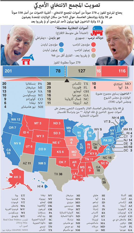 وإذ ركّز بايدن على ظاهرة الإسلاموفوبيا "التي ساهمت في صعودها سياسات ومواقف ترامب"، دعا مليون ناخب مسلم إلى مساعدته في انتزاع هذا "السُم" الموجود في البيت الأبيض، قائلاً: "لنجعلها فترة رئاسية واحدة له في 3 نوفمبر"، مشيراً إلى أنه لن يدعم أنظمة ديكتاتورية تضطهد شعوبها ومعارضيها.وأشار المرشح الديمقراطي إلى أنه سيعمل مع الكونغرس لإصدار تشريع جديد لمواجهة جرائم كراهية وإهانة طالت الأميركيين من ذوي الأصول الإسلامية واللاتينية والإفريقية نشرها ترامب خلال فترة حكمه بأقواله وسياساته، مُعتبراً أن أن المسلمين عانوا الإساءة والعنصرية رغم مساهماتهم في المجتمعية.وحذر بايدن من كارثة صحية واقتصادية وعرقية تمر بها الولايات المتحدة حالياً، وتزداد تداعياتها شدة على جميع الأميركيين، مُتعهداً بالعمل على حلها.ولا يعرف على وجه اليقين أعداد المسلمين في الولايات المتحدة، لكن تقديرات الخبراء تشير إلى ما لا يقل عن 6 ملايين، 66 في المئة منهم ديمقراطيون و13 في المئة جمهوريون و20 في المئة مستقلون، بينهم مليون يحق لهم الانتخاب يتوزعون في كل الولايات.وقد يلعب الأميركيون المسلمون، خصوصاً مع جهود تسجيل الناخبين، دوراً مهماً في عدد من الولايات المتأرجحة مثل ميشيغان، حيث فاز ترامب فيها في 2016 بفارق ضئيل وصل إلى 0.02 في المئة أو أقل من 11 ألف صوت.