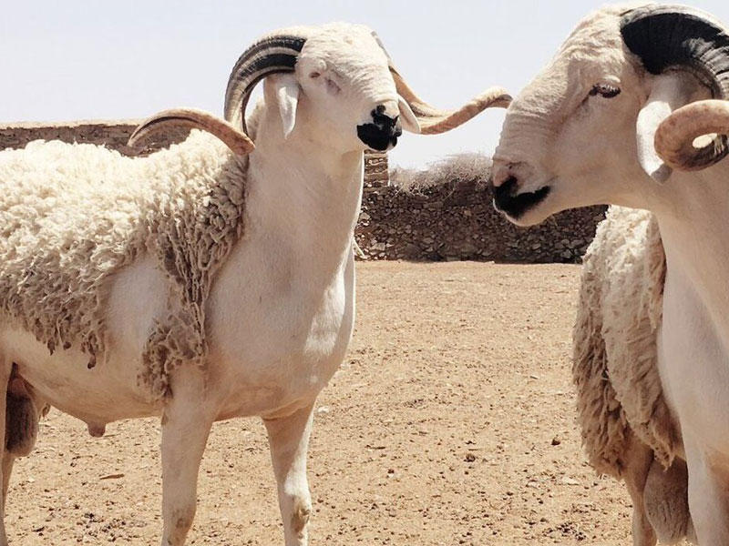تحظى سلالة الخراف، المعروفة بـ"الصردي"، بشهرة واسعة في المغرب، وينظر إليها باعتبارها الأفضل خلال فترة عيد الأضحى، وغالبا ما يكون سعرها الأعلى في سوق الماشية.وقال موقع سكاي نيوز، أمس الأول، إن المغرب يعتبر موطنا أصليا لهذه السلالة من الخراف، التي تمتاز بطولها اللافت، فضلا عن رأسها الأبيض مع بقع سوداء حول العينين.أما بطن هذا الحيوان، إلى جانب أعضاء أخرى مثل الرأس، فلا يعلوها الصوف، وهذا الأمر يجعل خروف "الصردي" مميزا في مظهره عن باقي الأكباش، في حين يتخذ القرنان شكلا معقوفا.