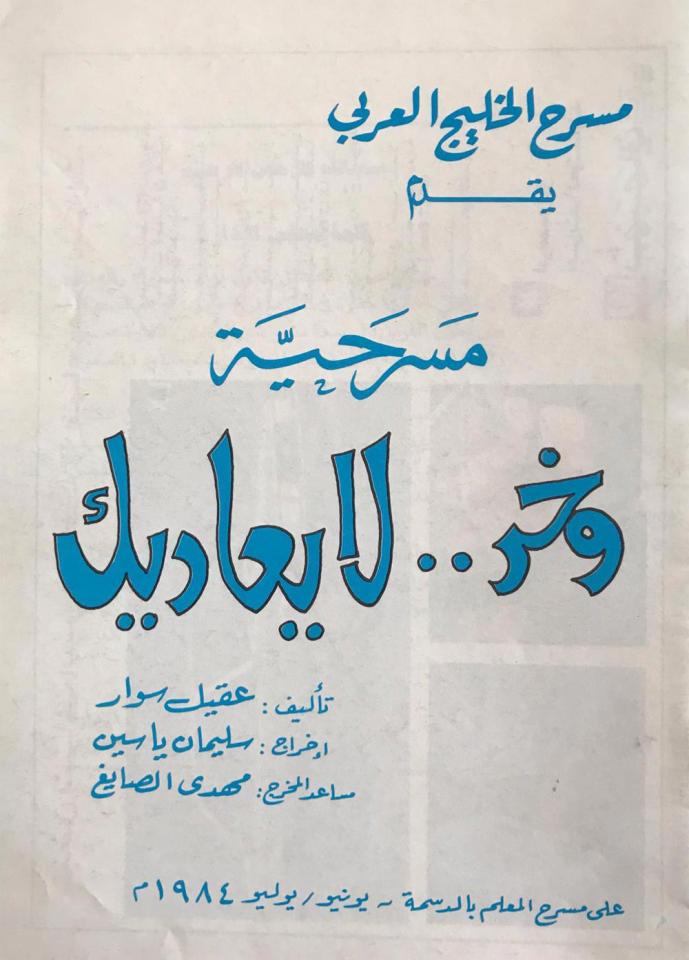 من أرشيفي التراثي: بروشور مسرحية "وَخِّر... لا يعاديك"، التي قدمها مسرح الخليج العربي في الكويت عام ١٩٨٤، على مسرح المعلم في الدسمة، وهي من تأليف الكاتب البحريني عقيل سوار، وإخراج الفنان الكويتي سليمان ياسين، وتمثيل نخبة من نجوم المسرح العربي: خالد العبيد، ومحمد السريع، وأحمد العامر، وعبدالناصر درويش وباسمة حمادة... ولم يتبين لي في الحقيقة قصة المسرحية، أو بالأحرى المغزى الحقيقي لمضمونها، ولكن على العموم رسالة المسرح تقدم إسقاطات فكرية ونقدية وظواهر لافتة تحدث في المجتمع وتُعرض للجمهور، وتتم معالجتها بأسلوب درامي أو كوميدي، وليس شرطاً كما فهمت من العنوان أن يكون مثلاً للحالات المرضية، فقد يكون للحالات السلوكية والأمراض الاجتماعية والظواهر غير المستحبة في المجتمع، وهؤلاء على أية حال مرضى يجب الابتعاد عنهم!!هذه الأيام يشهد العالم انتشار فيروس كورونا، وأصبح كل منا يخشى الاقتراب من الآخر؛ فقبل الوباء كنا "نعطس" كما يفعل كل الناس، ونقول "الحمد لله"؛ ونسمع من حولنا، الواحد تلو الآخر، يرد "يرحمك الله"، فنجيبهم "يهدينا ويهديكم الله"، فتأتينا وتأتيهم حسنات من رب العالمين!!