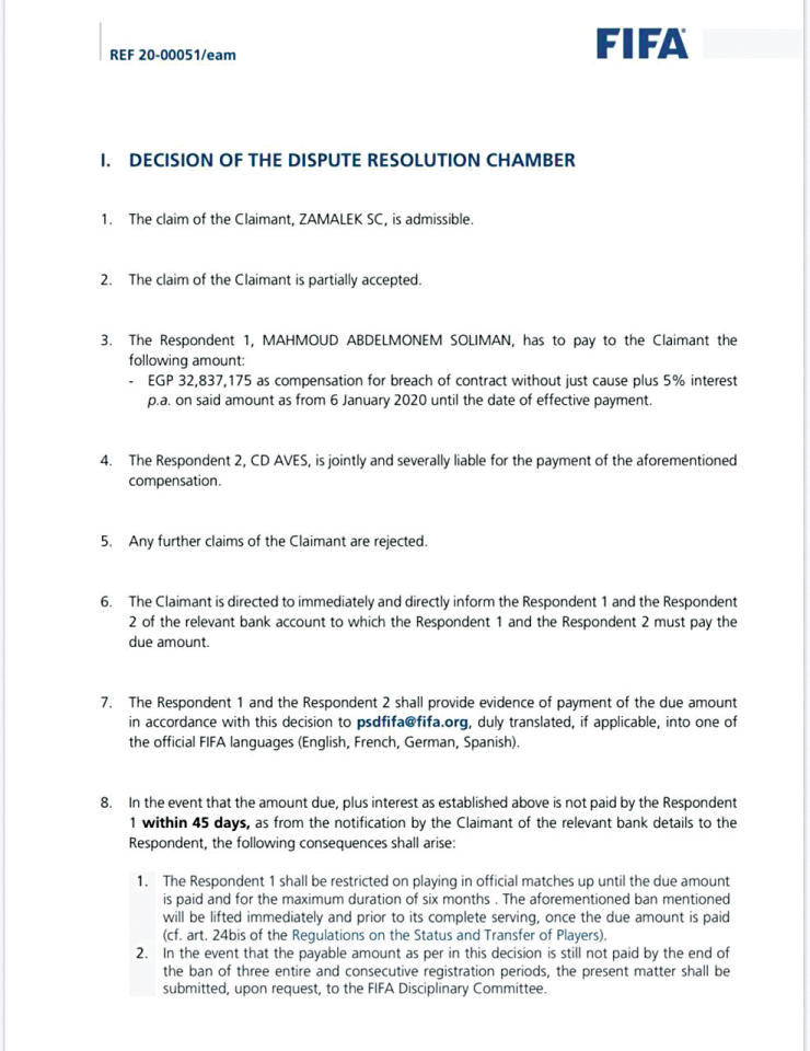 قرر محمود عبدالمنعم "كهربا" لاعب النادي الأهلي الطعن على الحكم الصادر ضده من الاتحاد الدولي لكرة القدم "فيفا" بإلزام اللاعب بغرامة قدرها مليونا دولار بما يعادل 32 مليوناً و800 ألف جنيه مصري، لمصلحة نادي الزمالك، بسبب خرق عقده مع النادي الأبيض، مع إيقافه 6 أشهر حال عدم السداد.ورغم العقوبة الموقعة عليه، فان كهربا يعتبر أنه انتصر على الزمالك في القضية لعدم توقيع عقوبة إيقاف ضده والاكتفاء بالغرامة فقط.واتهم كهربا اتحاد الكرة المصري بعدم الحيادية في القضية قائلاً في تصريحات على صفحته الشخصية عبر إنستغرام: رغم تقديم الاتحاد المصري للفيفا وثيقة محاباة مع نادي الزمالك حتى تقع معاقبتي، إلا أنني والحمد لله لم أعاقب، وهذا يثبت صحة موقفي، أما بالنسبة للغرامة المالية فسيقع الطعن فيها أمام محكمة التحكيم الرياضي بلوزان وإلغاؤها بإذن الله".