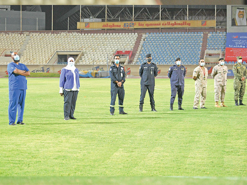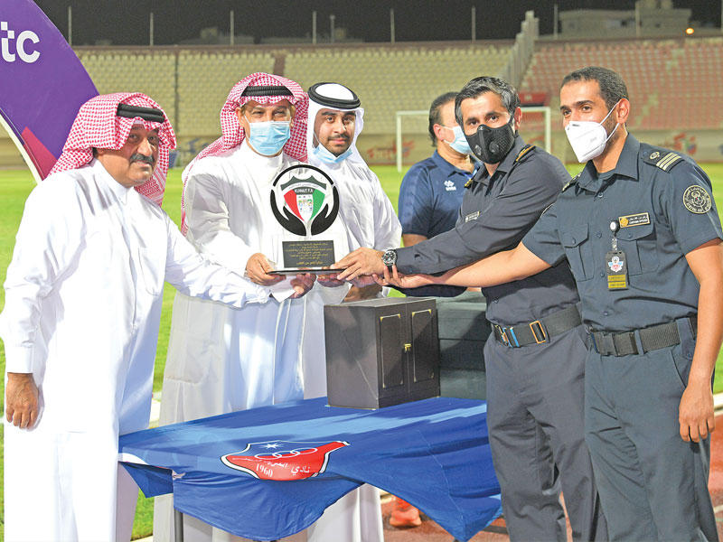 شهدت مباراة الكويت والنصر تنظيم ممر شرفي لأبطال مكافحة فيروس كورونا بالصفوف الأمامية، وقام المدير العام لهيئة الرياضة د. حمود فليطح، ورئيس اتحاد الكرة الشيخ أحمد اليوسف، بتكريم ممثلي الجهات التي ساهمت بدور فعال في محاربة الفيروس على مدار شهور طويلة.ولاقت البادرة، التي شهدت توزيع الدروع، استحسان الجميع، وسط جهود قائمة ولا تزال من أبطال الصفوف الأمامية للحفاظ على أرواح أهالي الكويت والمقيمين على أرضها الطيبة.