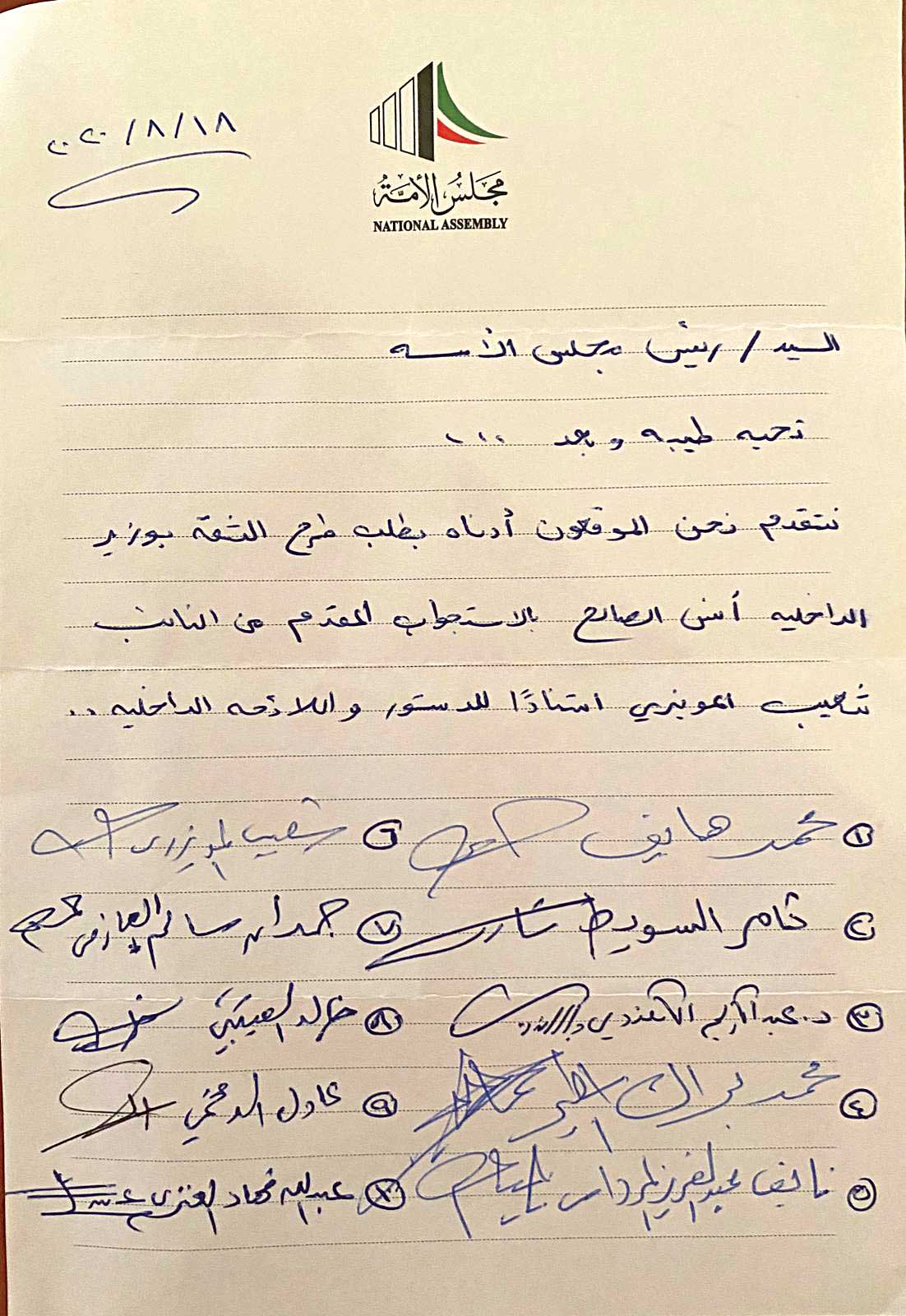 وقال المويزري: الوزير الصالح ومجموعته من الضباط يديرون الحسابات الوهمية التي تهاجم السلطة ليوهموها، مضيفا: انا في الداخلية منذ ان كان عمر الوزير الصالح سبع سنوات، وهو جير وزارة الداخلية لمصالحه الشخصية، معتبرا ان الوزير الصالح حاول التستر على الملف الخاص بأحد وكلائه المساعدين اسبوعا او اسبوعين ولم يستطع.وأضاف: سأوضح للناس حقيقة هذا الوزير الفاسد واقول له: اذا عندك اي شيء ضد شعيب المويزري لا تتردد، وانا متاكد انك قمت تفتر على النواب، وان ما فيه الا سبعة نواب يقفون مع الاستجواب وهذا كله من اجل سمعتك، واقول لرئيس الوزراء: ضباط يدارون لمصالح شخصية، ولمصلحة الوزير او اخرين، وضابط اخر يستخدم لاغراض خاصة، وضابط فاسد تتم ترقيته.وأكد ان القضية مع الصالح ليست شخصية انما قضية بلد، فهذا الوزير لم يترك شيئا الا دمره، وعرض فيلما عن المناصب التي يتقلدها الوزير الصالح حاليا. وتابع المويزري: الوزير الصالح يحظى بـ 12 منصبا بالحكومة وانا مع كل تاجر شريف، والصالح كان تاجرا قبل توليه الداخلية، وهو عبث في الجداول الانتخابية، عناوين مسجلة على اخرين واخرى بلا شارع، وتسجيل 31 ناخبا على عنوان واحد في الرميثية في الدائرة الاولى، وهناك منزل عليه 20 اسرة، وهناك مسجلون في قطع بلا بيت، و85 ناخبا على قطعة 8 وهي ليست موجودة، والوزير لم يعالج اخطاء القيود الانتخابية قبل التحصين.وعلق نواب على ما عرضه المويزري بشأن القيود الانتخابية بأنها مسجلة قبل عهد الوزير الصالح بسنوات كما هو مبين في الجدول، والمويزري يرد: القيود الانتخابية تراجع سنويا والوزير هو المسؤول عنها الان. وقال المويزري: في ضاحية عبدالله السالم 61 شخصا بلا بيوت، وفي الشامية 26 ناخبا في بيت واحد، و37 في القادسية من عوائل مختلفة.ثم عرض المويزري 111 قيدا انتخابيا في القطعة صفر بمنطقة ابرق خيطان والتي يعود تسجيلها للتسعينيات والنواب يستمرون في التعليق: هذه قيود قديمة... وقال المويزري: الوزير هو المسؤول الان عن مراجعتها... والغانم للنواب: خله يستمر. وتابع المويزري: 33 ناخبا في الصديق على عنوان واحد بعوائل مختلفة، و34 اخر في الجهراء والفروانية، واخرون بالخامسة والرابعة وغيرهما، وعرض فيديو لخبير الانتخابات على حد قوله صلاح الجاسم حول نقل القيود الانتخابية.واكد ان صلاح الجاسم طرف محايد ويملك احصاءات الانتخابات وليس كلامي، فهل يقبل نواب الامة تزوير ارادة الشعب لخدمة متنفذين وعلى رأسهم الوزير الصالح كي يتحكموا في الانتخابات وينجحوا من يريدون ويسقطوا اخرين؟وقال المويزري: معروف ان اكبر قضية تتعلق بالاجراءات الامنية تطبيق القانون، والمباحث الجنائية تروع الناس من خلال الاتصالات والاستدعاءات لاشخاص دون علمهم بالقضية، وماذا اذا مات او قتل؟ وحدثت مع الميموني رحمه الله، ولا يجوز للداخلية التجاوز على القانون، فهناك ضابط "موزين" يعمل لصالح نائب او مسؤول، واذا كان هناك امر ضبط يضبط الاشخاص المعنيون بعد التخلف عن الحضور لكن لايتم من خلال الترويع، وهناك مسؤولون عينوا لاهداف شخصية لصالح الوزير واخرين، والصالح اعترف بهذا الخلل وذهب لجمعية المحامين متعهدا بتطبيق القانون بهدف تطهير نفسه. واضاف: لا احد يمنع وزير الداخلية من تطبيق القانون لكن تتجرأ لاختراق القانون لا، انت لا تملك ذلك ولا غيرك ونحن في دولة قانون فمن غير القانون لا يوجد رقم قضية لمواجهة المواطنين بها للمباحث الجنائية.واكد ان النيابة حفظت قضية عبيد الوسمي والنائب العام يقول في الحفظ ان ما ذكره بتغريداته ممارسة عملية ويتعلق بالرقابة الشعبية وهذا اروع ما كتب، وهناك احد الاشخاص "لعب لعبا" باجهزة المباحث الجنائية وسأكشف عنه.