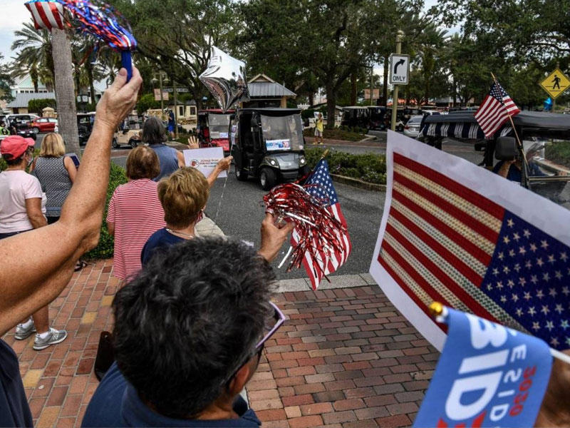 وتراقب ستانلي، وهي تتكلم، مسيرة مؤيدة لبايدن تضم أكثر من 200 عربة غولف تتقدم ببطء تحت مراقبة الشرطة. وإن كانت المسيرة تجرى بدون أي حادث فإن الأشهر الأخيرة سجلت عددا متزايدا من الصدامات.وروت ستانلي: "في آخر مرة قمنا بذلك، كانوا في انتظارنا، وهددوا بإلقاء مقذوفات علينا، مسامير أو أشياء يمكن أن تلحق أضرارا بعربات الغولف"، متابعة: "اضطررنا عندها إلى استدعاء الشرطة. إذ نقوم بتحركاتنا الديمقراطية، هم يقومون بتحركاتهم المعادية للديمقراطية".وفيما تتقدم العربات الصغيرة، التي تحمل ملصقات مؤيدة لجو بايدن، يتجمع الجمهوريون أمام مخبز.وتستعرض هنرييتا إيمي (83 عاما) باعتزاز تأييدها لترامب، مرتدية قميصا كتب عليه "احفظوا عظمة أميركا"، شعار ترامب الانتخابي، وتقول وهي تتأمل بازدراء الموكب الديمقراطي "مجموعة من الفاشلين". وأكدت أن ترامب وفى بوعوده الانتخابية، مشيرة إلى أنه "اهتم بالهجرة غير القانونية"، وأضافت: "نريد أن يأتي الناس إلى هنا، لكن بصورة قانونية. جاء والداي من هولندا، قدما إلى هنا بشكل قانوني وتعلما الإنكليزية".وهي تقر بتصاعد التوتر مؤخرا في المدينة، لكنها تلقي المسؤولية على عاتق الديمقراطيين.وتنتمي إيمي إلى الغالبية في المدينة التي ولد جميع المقيمين فيها في أماكن أخرى، والتي تستقطب خصوصا متقاعدين من البيض والمحافظين.وبحسب الأرقام الرسمية، فإن 57 في المئة من الناخبين في مقاطعة سومتر وكبرى مدنها ذي فيليدجيز، من الجمهوريين.ورأى الكاتب أندرو بليكمان، الذي نشر كتابا حول المدينة بعنوان "مدينة الترفيه: مغامرات في عالم بلا أطفال"، أنها تمثل "مجسما لما يحصل في أميركا"، موضحا أن الأجواء في البلد "ازدادت احتداما وتحزبا" ولفت إلى أن سكان المدينة منخرطون كما باقي البلاد في الاستقطاب القائم بين الحزبين".وأردف: "يعيشون في وهم. في عالم خيالي، مطابق لما يتصورونه عن أميركا الخمسينيات والستينيات. مع أسلوب هندسي خاطئ، وتاريخ خاطئ، ثمة معالم تاريخية خاطئة في كل مكان".وفلوريدا من أكبر الولايات الأميركية عددا، ويبلغ عدد الناخبين فيها 14 مليون نسمة، وهي ولاية أساسية غالبا ما سُلطت الأضواء عليها في المراحل الانتخابية بتسجيلها في غالب الأحيان هامش انتصار ضيق، ما يبقي الغموض مخيما على النتائج النهائية ويبقي الأمة برمتها في ترقب.لكل تلك الأسباب قد تكون المعركة في ذا فيليدجيز حاسمة. ولا يزال العالم يذكر الفوضى عام 2000، حين فاز الجمهوري جورج دبليو بوش بالبيت الأبيض بفارق 537 صوتا فقط في فلوريدا.