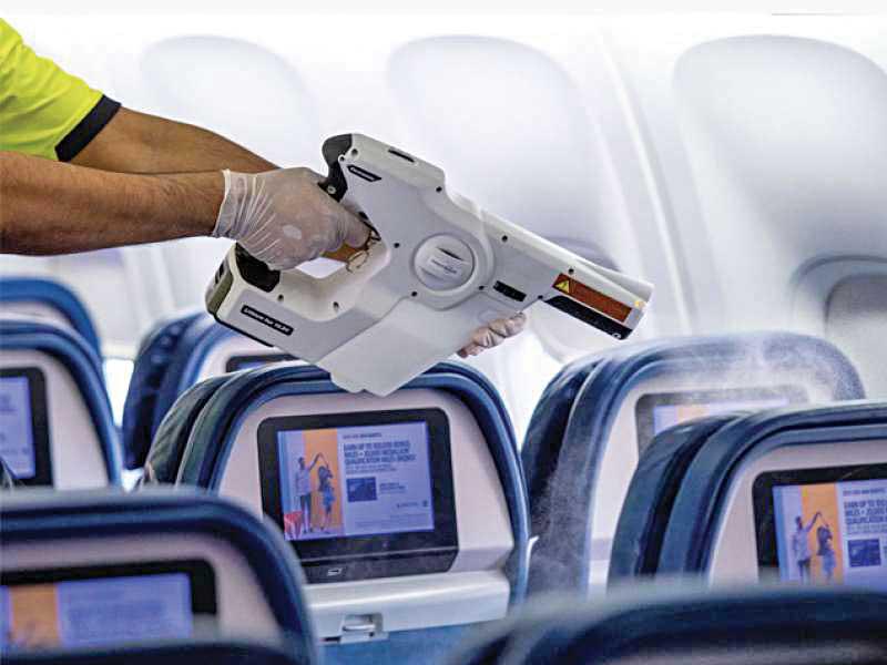 وتنوي "أميركان إيرلاينز" بدء استخدامه "في الأشهر المقبلة" على الأسطح داخل طائراتها، على أن تعتمده تدريجيا في كل أسطولها.ومن شأن هذا المعقم حماية الركاب وأفراد الطاقم من انتقال عدوى كوفيد 19 عبر الأسطح، لاسيما المناطق التي تتعرض للمس كثيرا، مثل المقاعد والمساند وصواني الطعام والأبواب.وأوضحت الشركة المصنعة أن المعقم يمكن استخدامه في المكاتب والمدار والقاعات الرياضية.وتحاول شركات الطيران، التي تعاني في الصميم من انهيار مبيعات بطاقات الطيران منذ بدء الجائحة، بطرق شتى طمأنة الركاب القلقين من تمضية ساعات عدة في مكان ضيق مع غرباء، خصوصا أن وضع الكمامة كان غير إلزامي خلال فترة داخل الطائرات.وعممت شركات الطيران الرئيسية إلزامية وضع كمامة خلال الرحلات، ومنعت بعض الشركات الجلوس في المقعد الوسط.