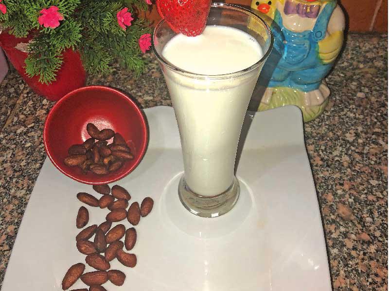 نسلق اللوز ثم نقشره وفي الخلاط الكهربائي نضيف اللبن والسكر واللوز ونخلطهم جيداً، ثم نصفيه ونضعه في زجاجة محكمة الغلق ونتركه في البراد، ويقدم بارداً.أسرار المطبخ
