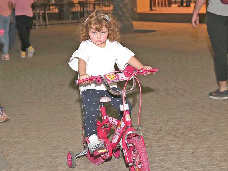 طفلة تمارس ركوب الدراجة (تصوير: نوفل إبراهيم وعوض التعمري وميلاد غالي وجورج ريجي)